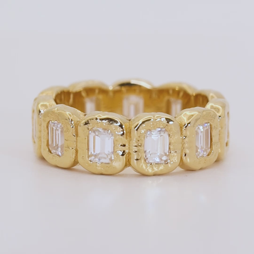 - Sophisticated Stellar emerald bezel Moissanite ring