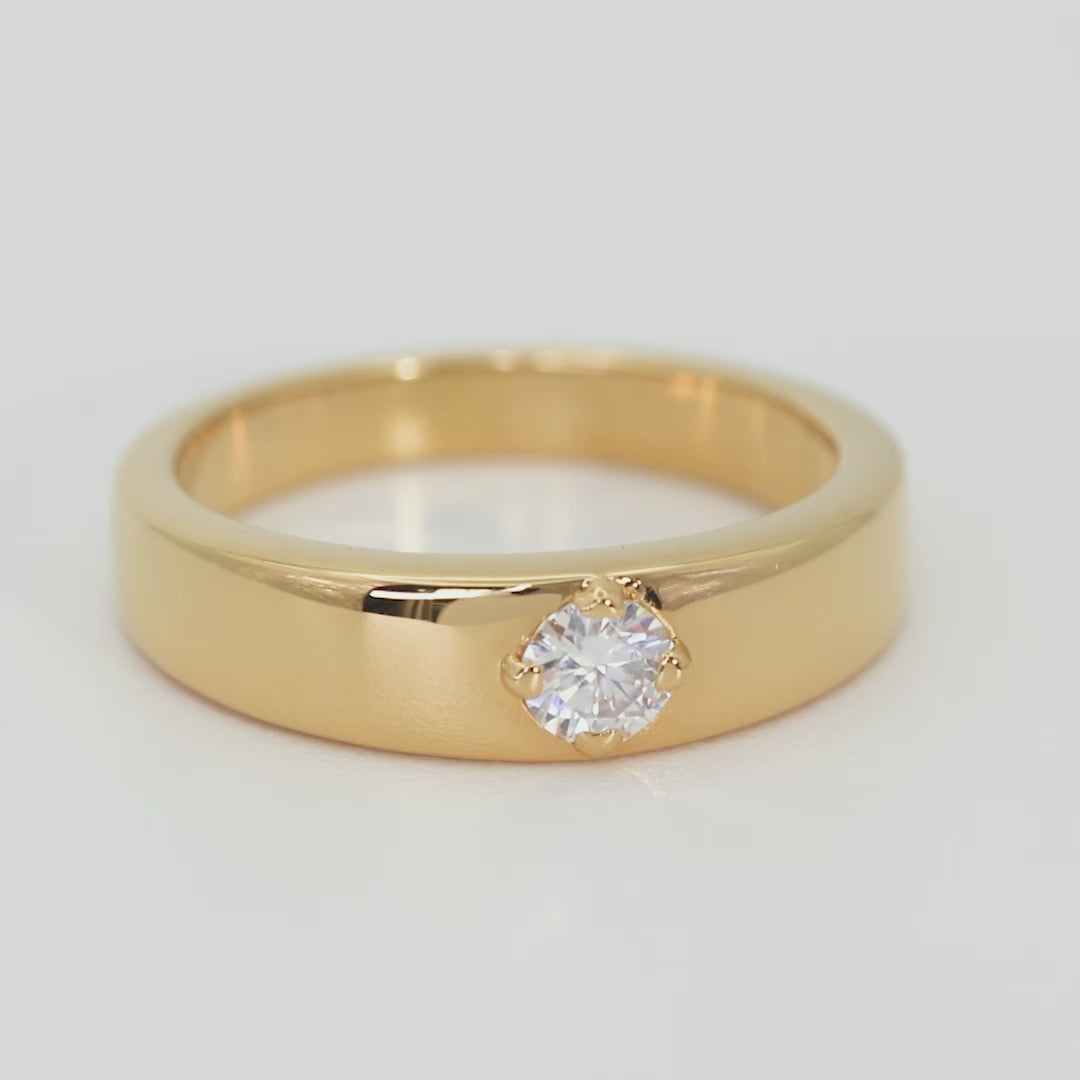 - Certified Brilliance: Showcasing a GRA-certified round Moissanite stone, set securely in a classic four-prong claw setting, this ring dazzles with exceptional clarity and brilliance.